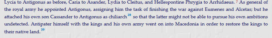 «Antipater himself with the kings and his own army went on into Macedonia in order to restore the kings to their native land» λέει το κείμενο.